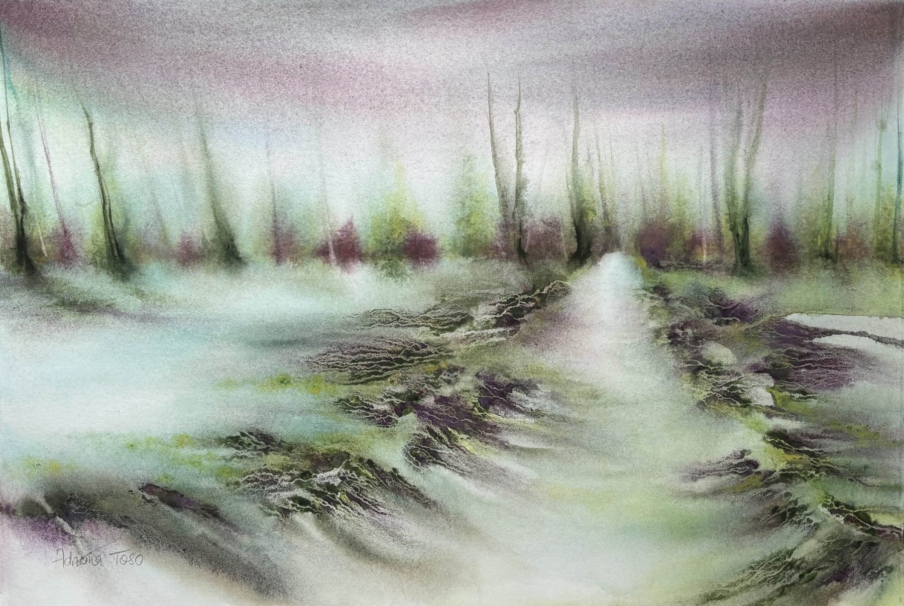 Utilizo todas las técnicas disponibles, a menudo húmedo sobre húmedo, pero también húmedo sobre seco. Y necesito mucha agua cuando pinto. Mi elección de colores es el resultado de mi estado interior. Pero normalmente combino un color con su complementario y pongo un gran énfasis en la combinación de colores fríos y cálidos.