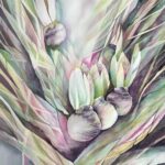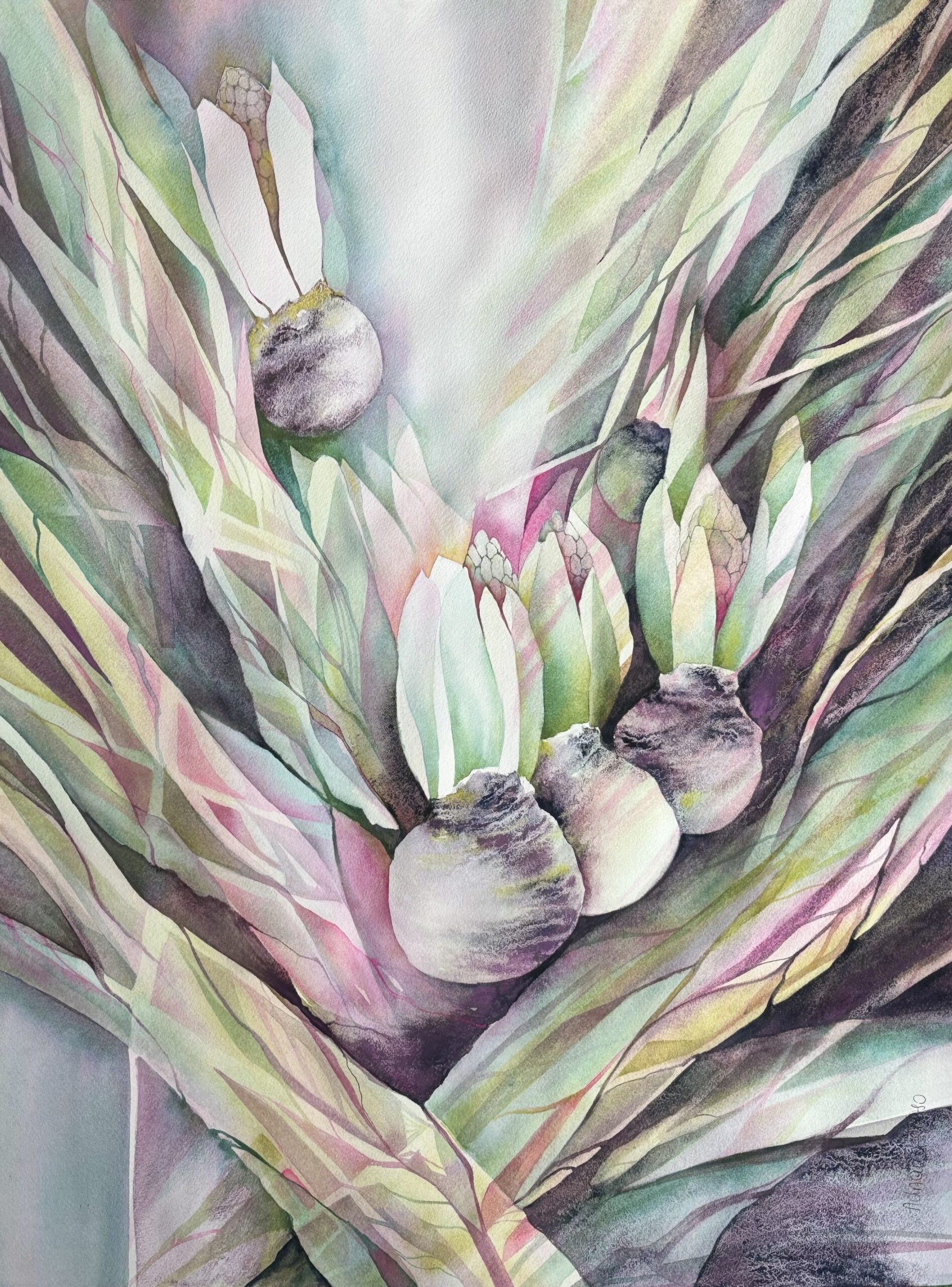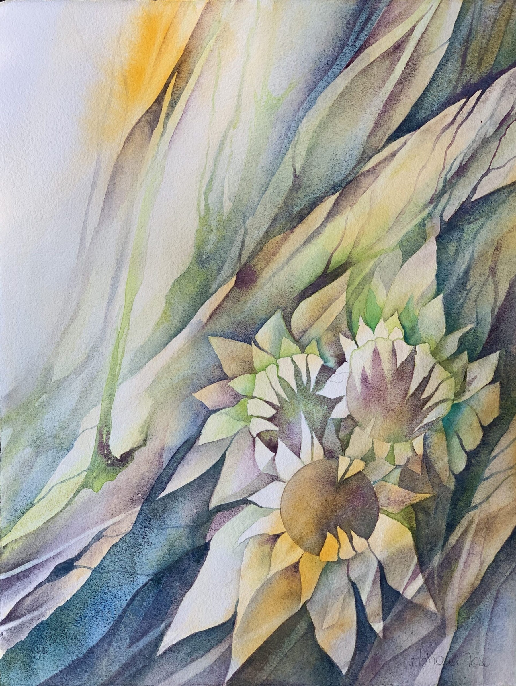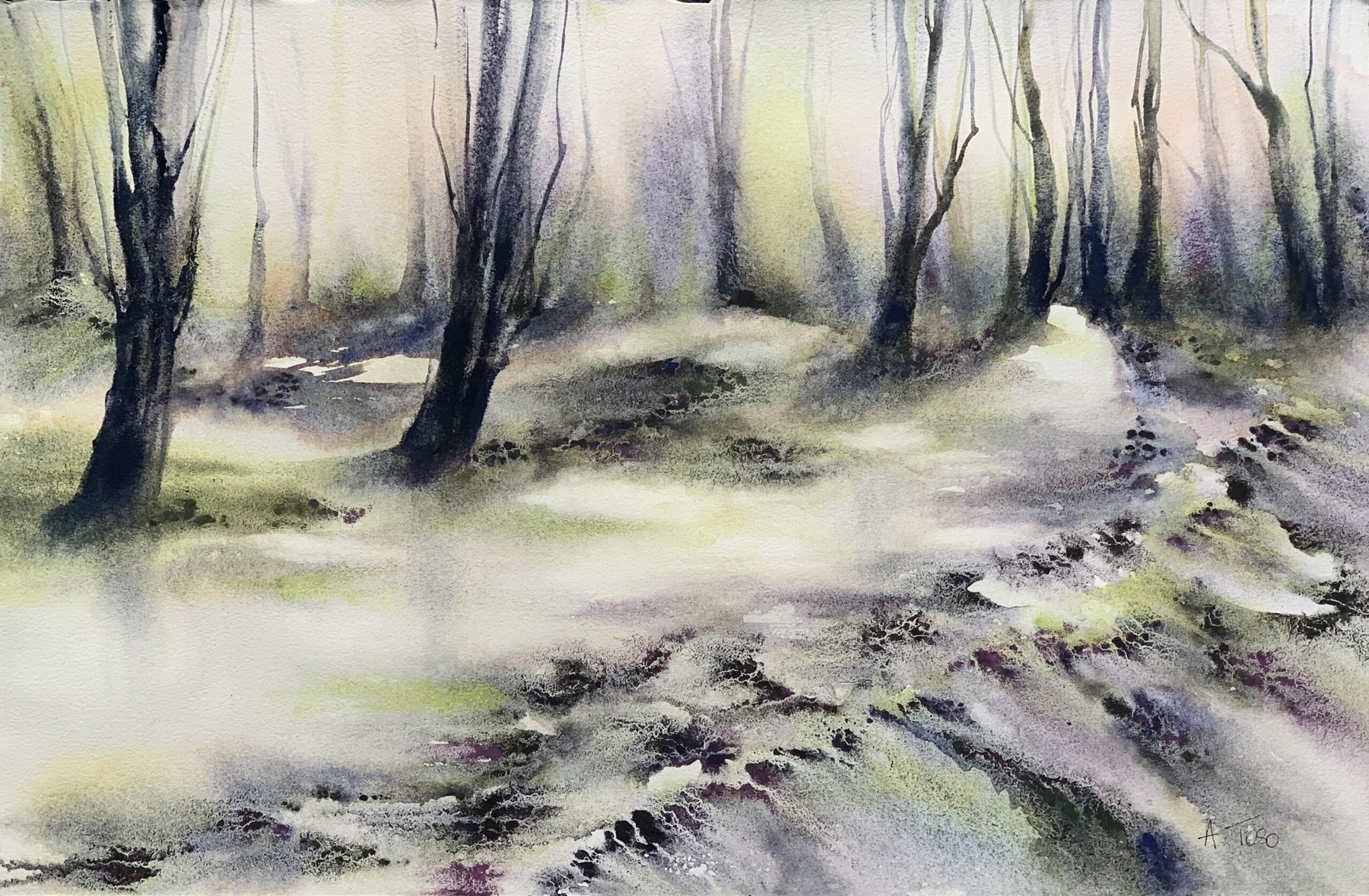 Intento dar profundidad a mis pinturas mediante contrastes de luz y oscuridad muy marcados. Las formas negativas son predominantes en mis pinturas. Como nunca uso líquido enmascarador, siempre tengo que ser muy disciplinada en dejar fuera el blanco del papel, que es el más claro que se puede lograr en la pintura de acuarela, y en contraponer tonos muy oscuros.
