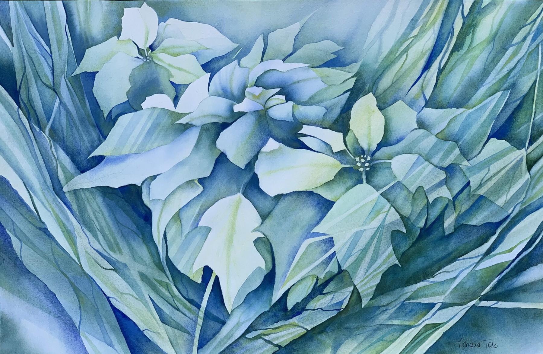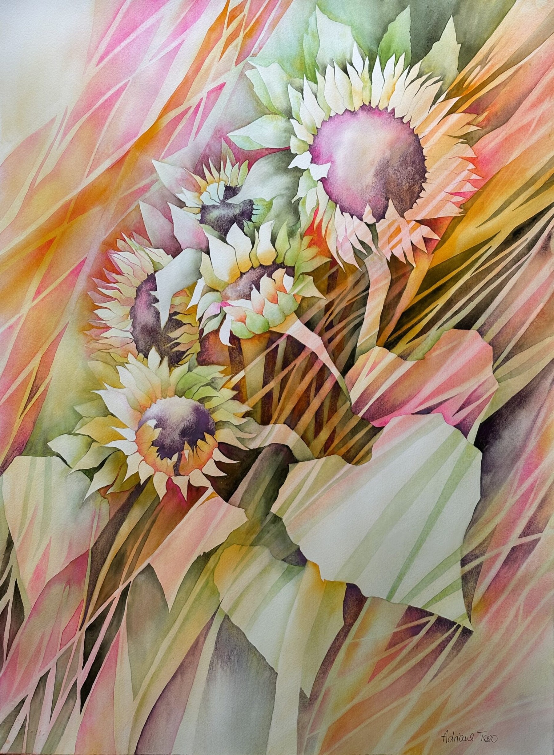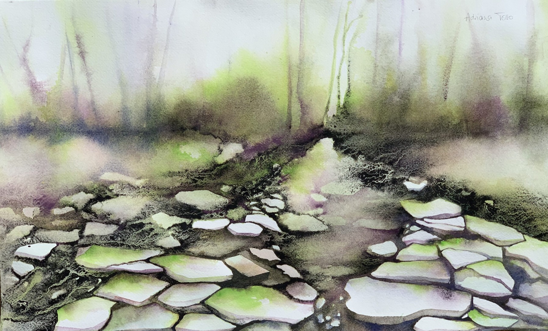 Adriana desarrolló un estilo expresivo bajo la guía de acuarelistas de renombre nacional e internacional, como Elke Memmler, Jutta Höfs, Andreas Mattern, Wilhelm Fikisz y Konstantin Sterkhov, por nombrar solo algunos, con quienes adquirió el conocimiento del diseño y la elección, manejo y mezcla de colores y todas las técnicas de pintura con acuarela. Hasta ahora, los motivos preferidos de Adriana son paisajes, flores y naturalezas muertas. Para ella, es su transparencia lo que debe valorarse mucho a la acuarela. La transparencia y el uso de la forma negativa es lo que hace que la pintura de Adriana sea misteriosa y etérea. Ella prefiere estrictamente la pintura de acuarela transparente o semitransparente a la opaca y trabaja en tantas capas como sea posible.