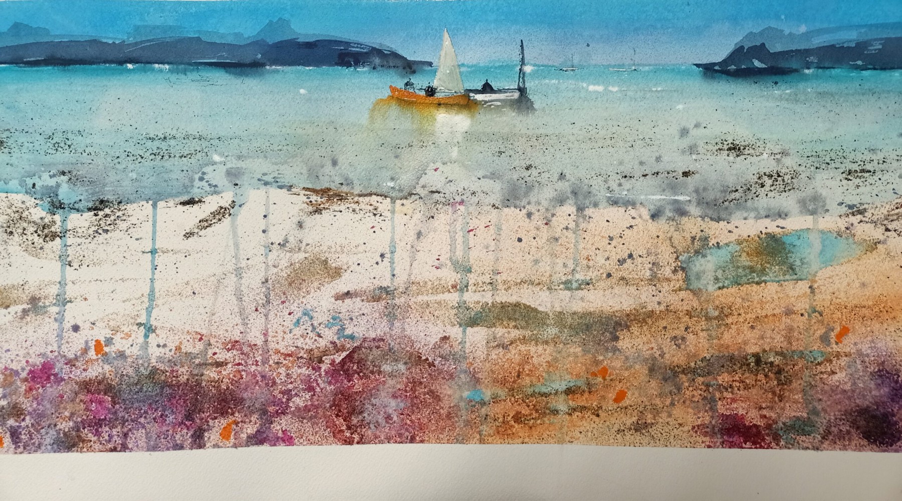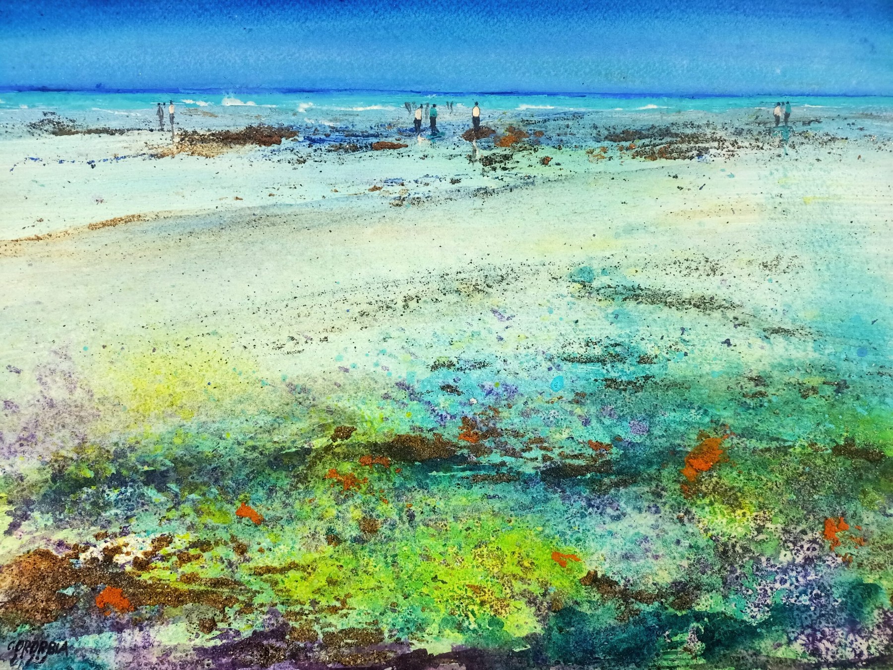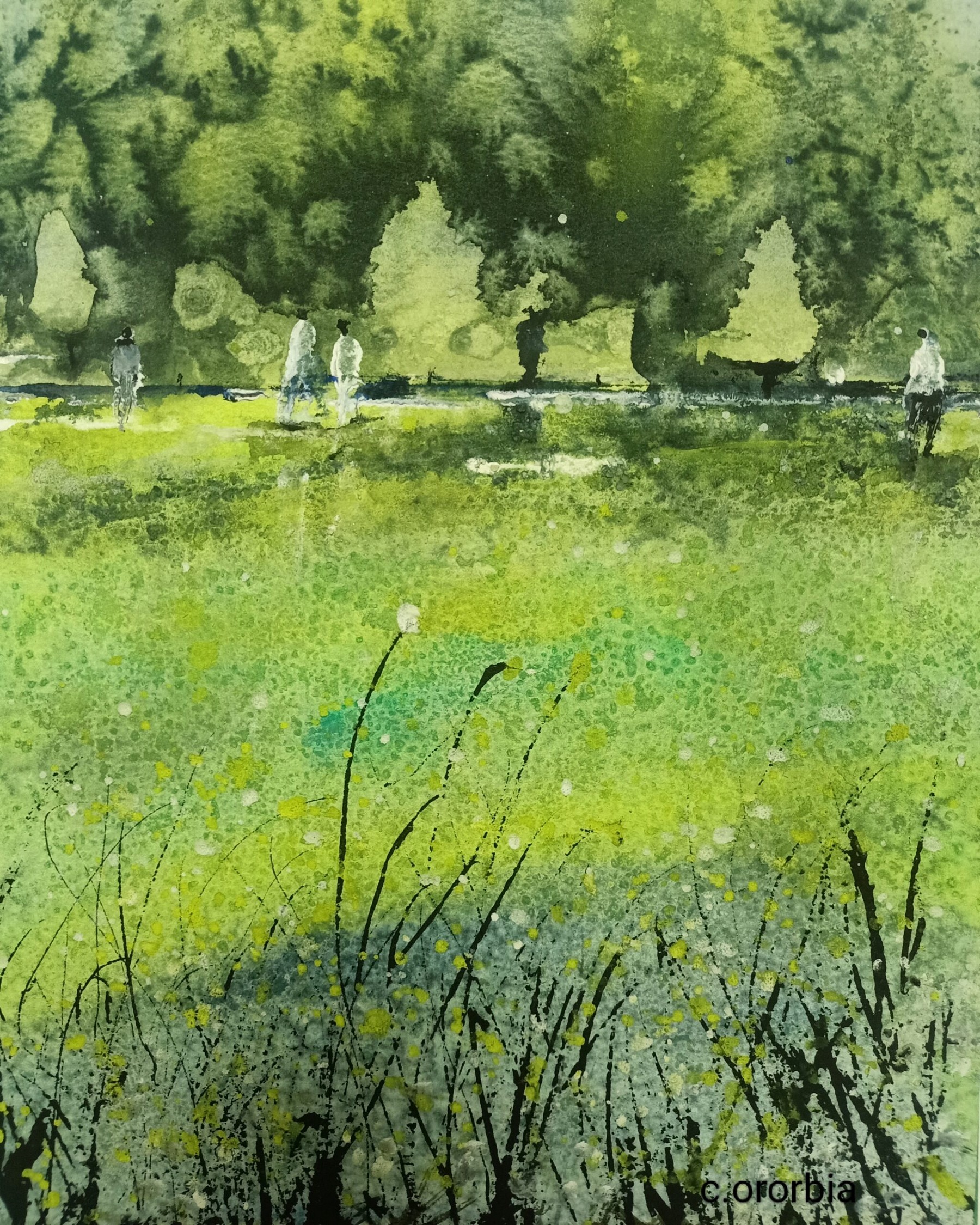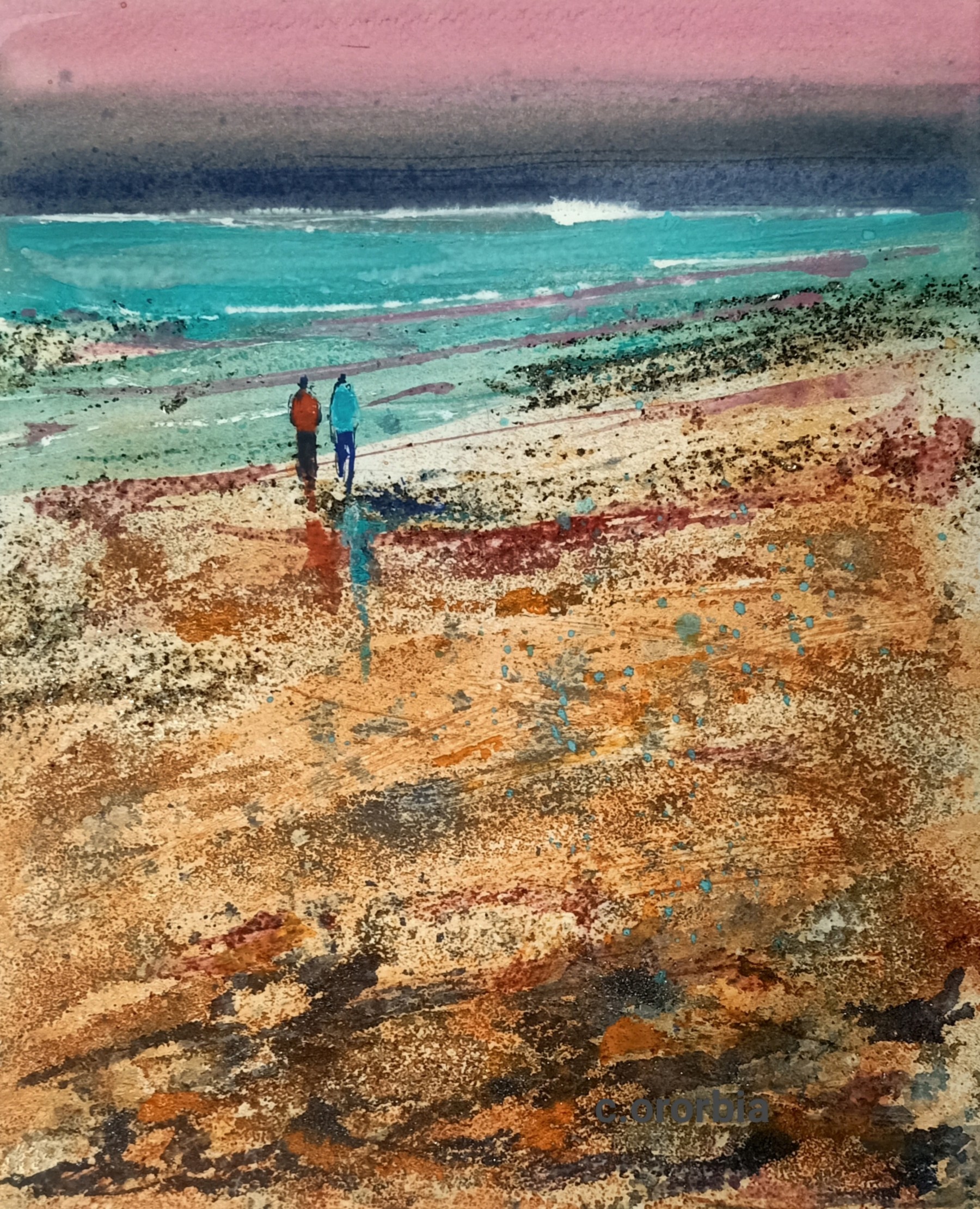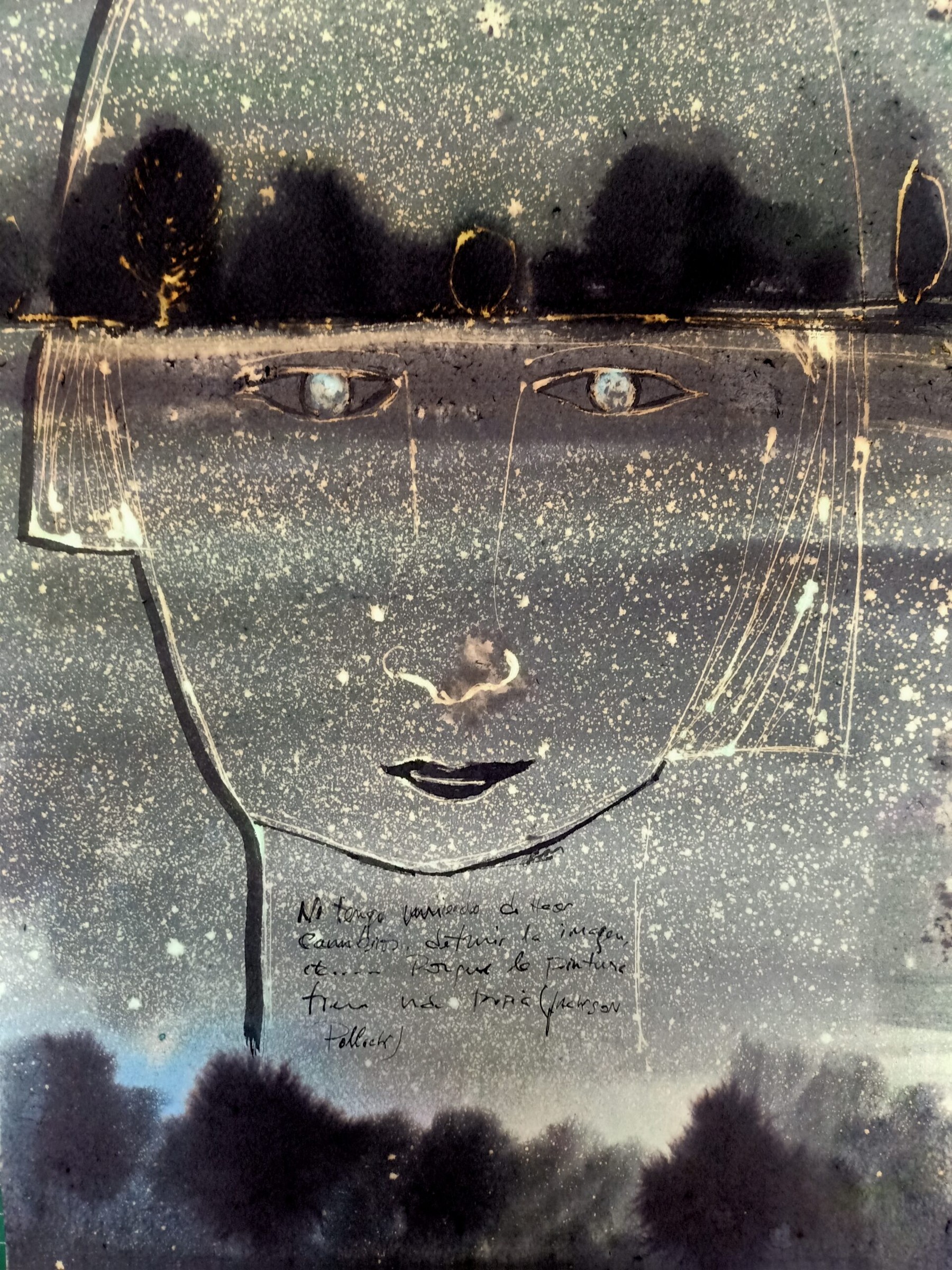 El descubrimiento de la acuarela en el año 2012 ha resultado decisivo a la hora de expresar e interpretar un mundo imaginario e inclusos escenas cotidianas de una manera libre y espontánea; unas veces con dibujo previo, grafismos, estudio de color y similares con objeto de sintetizar al máximo, otras enfrentándome al papel en blanco y dando rienda suelta al pincel, a los pigmentos, a las tintas, al spray, a los polvos de mármol y demás materiales, dejándome sorprender por las sensaciones únicas que constituyen parte del aprendizaje e investigación de esta técnica tan compleja como apasionada. Para mí, es ahí donde radica la magia de la acuarela, con la cual, una vez se inicia, uno no puede separarse.
