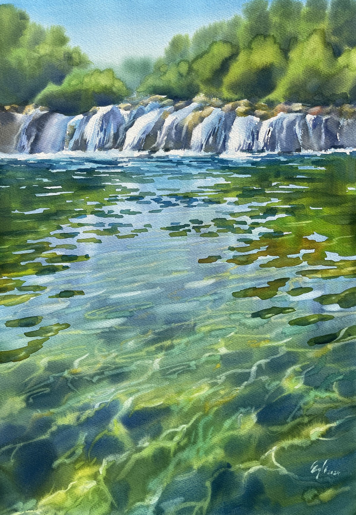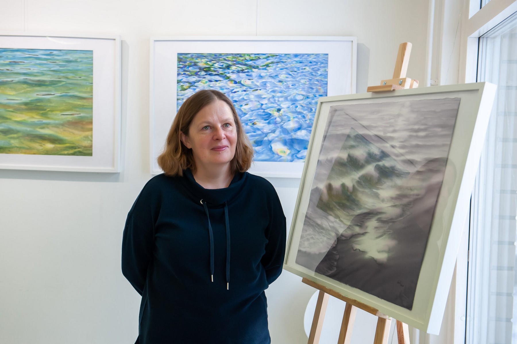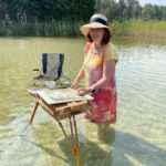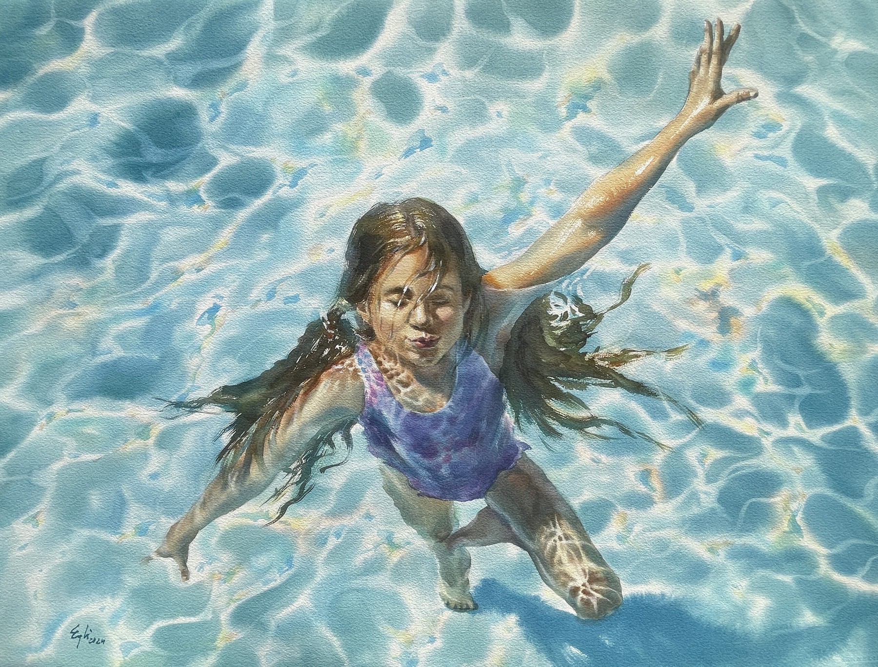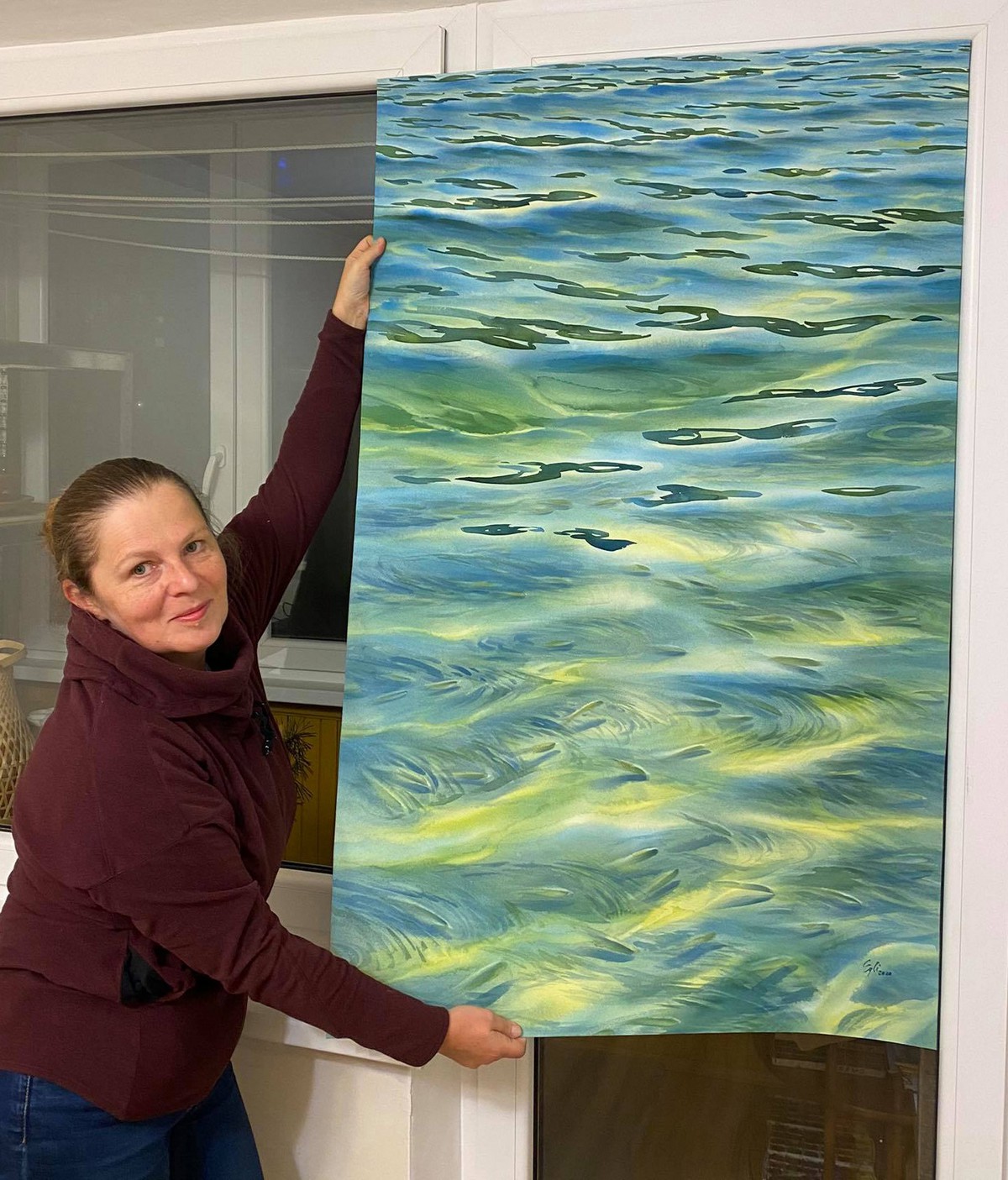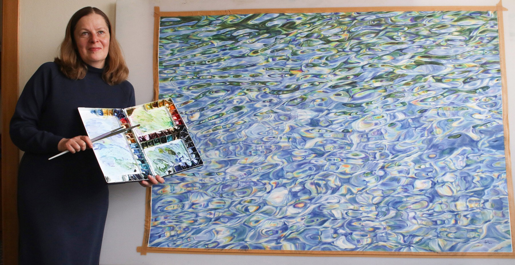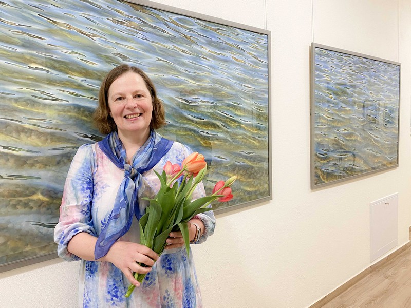 Una vez, mientras dibujaba las olas soleadas del lago, pintó accidentalmente guijarros debajo del agua, dentro de la ola. Ese cuadro llegó milagrosamente a la final del Concurso Mundial de Acuarela en París y determinó la dirección de su trabajo. A partir de entonces, se sumergió en la pintura al agua. Sus acuarelas han participado en exposiciones en muchos países. A veces, la llaman la maestra del agua.