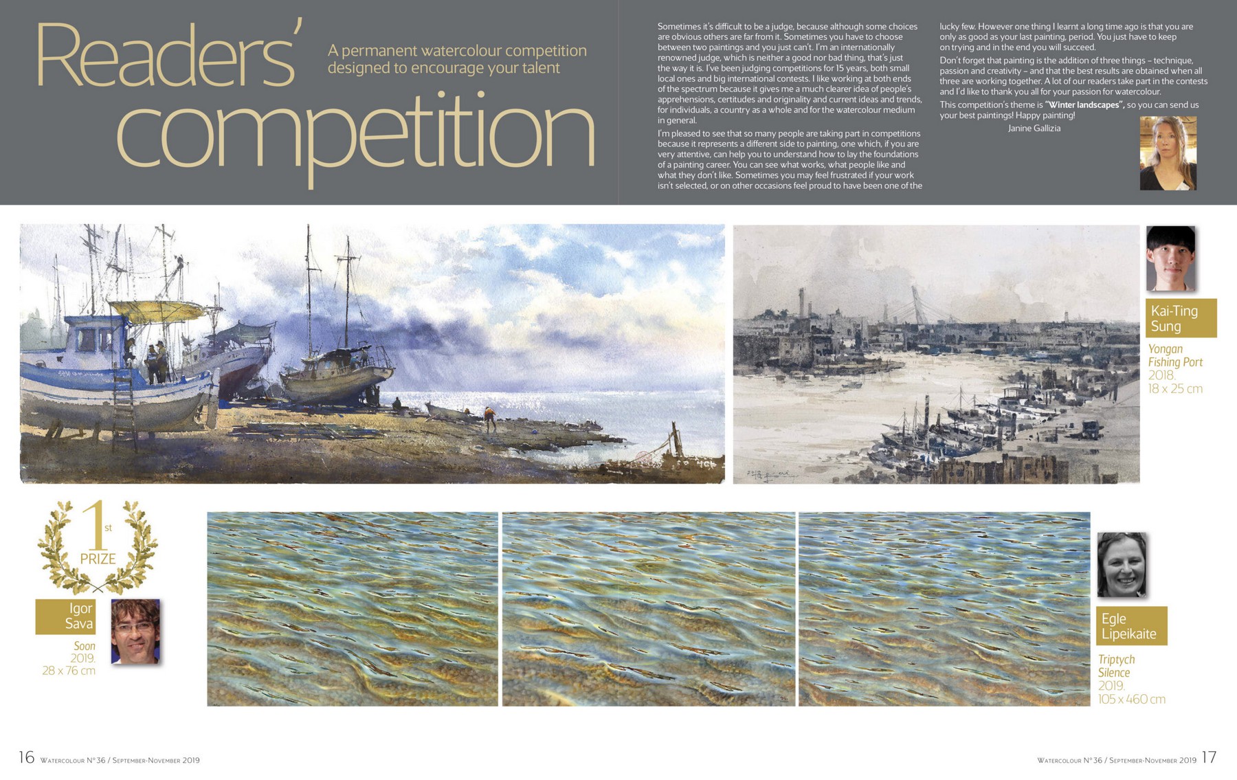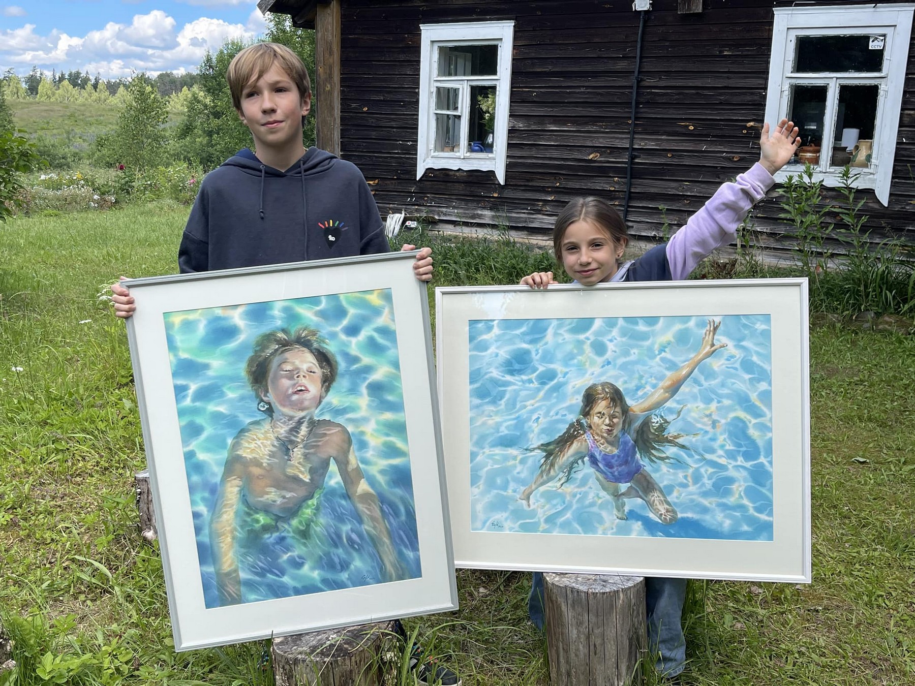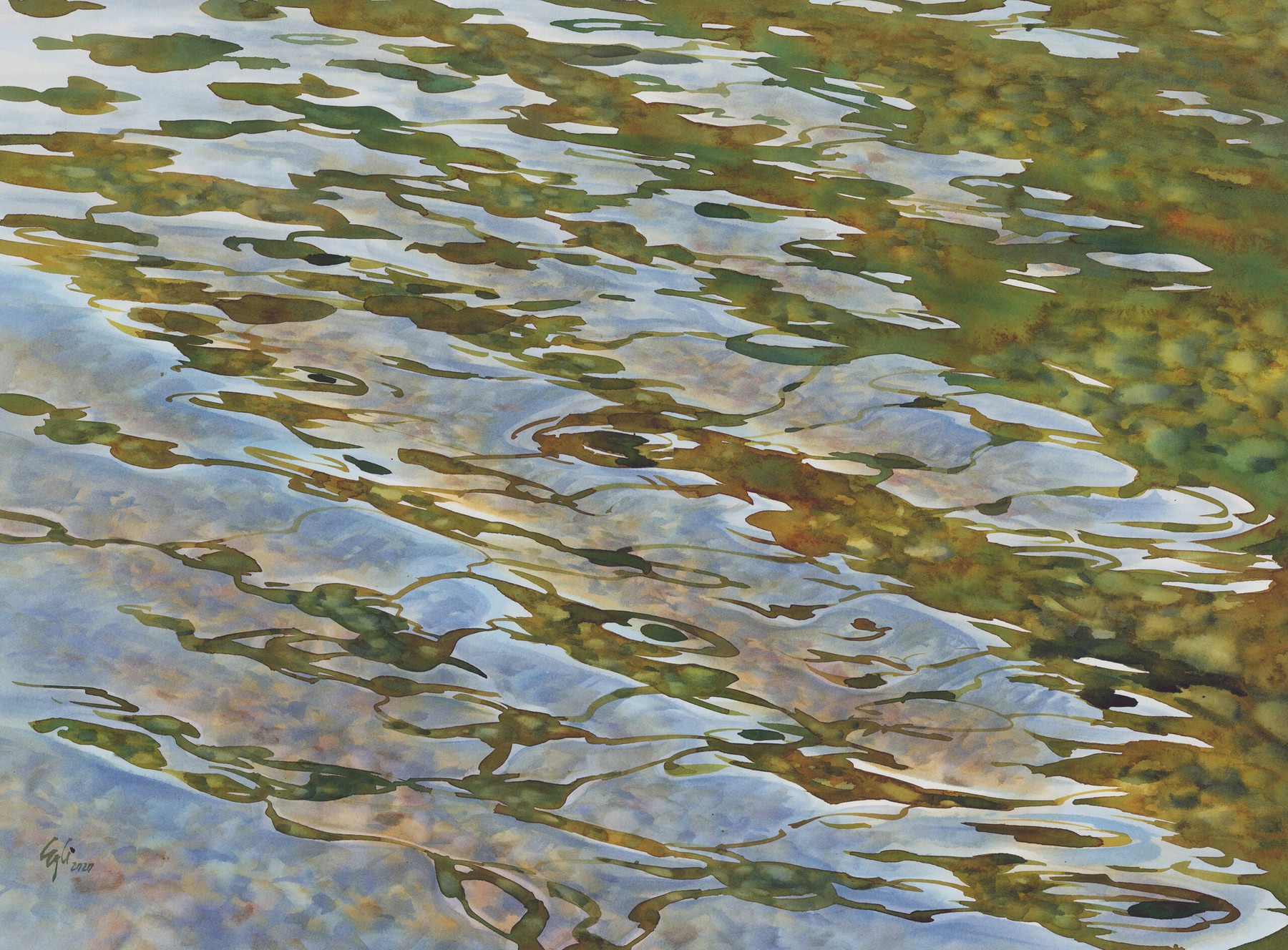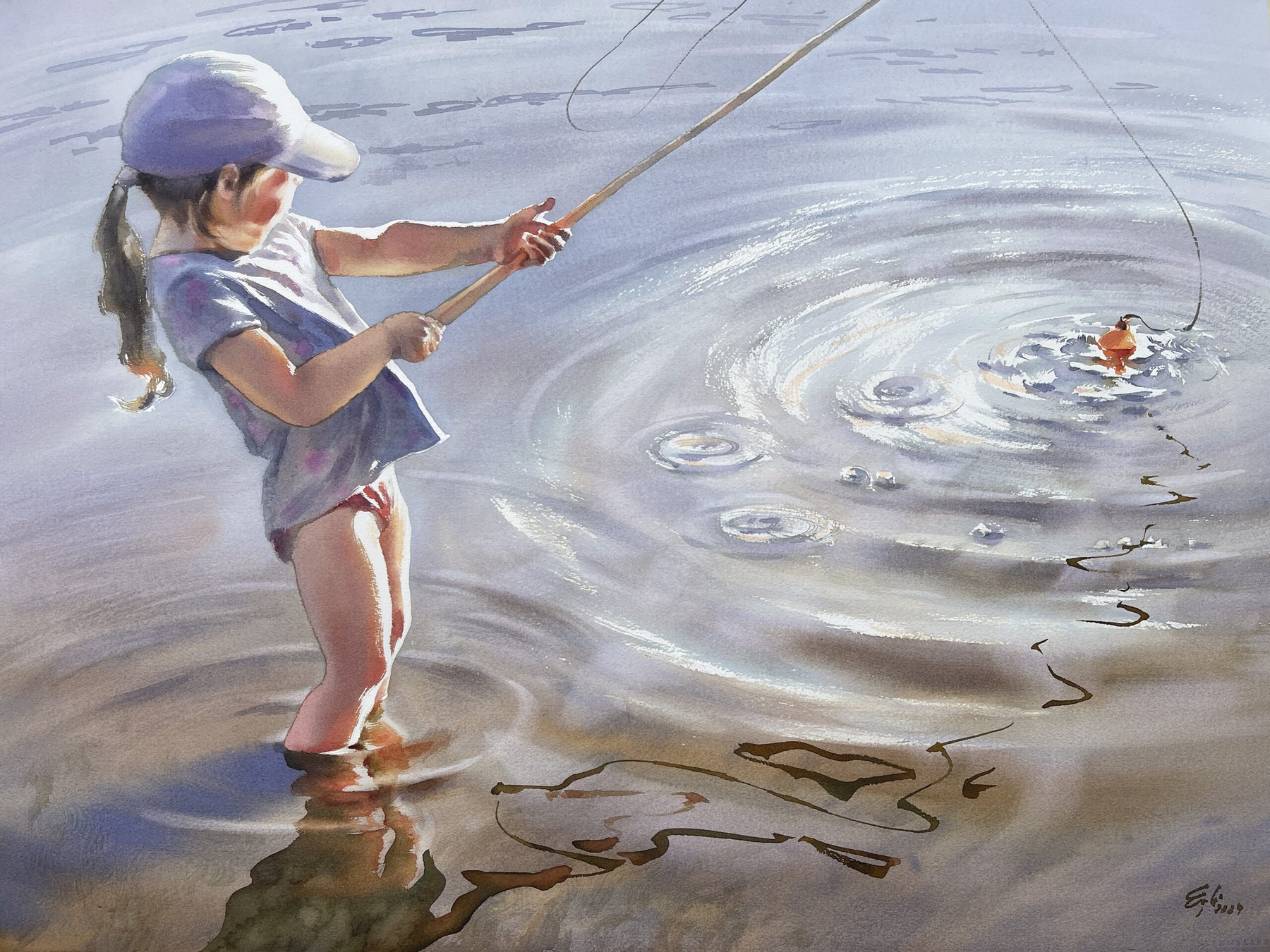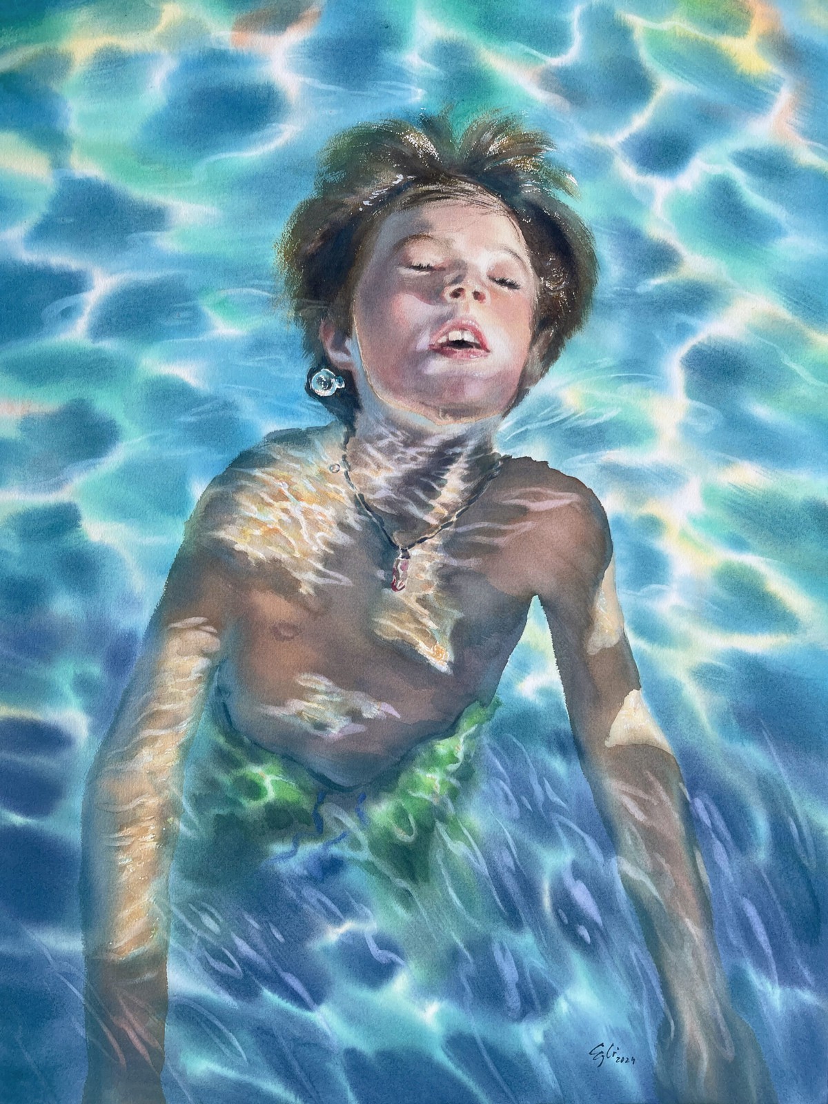 Una vez, mientras dibujaba las olas soleadas del lago, pintó accidentalmente guijarros debajo del agua, dentro de la ola. Ese cuadro llegó milagrosamente a la final del Concurso Mundial de Acuarela en París y determinó la dirección de su trabajo. A partir de entonces, se sumergió en la pintura al agua. Sus acuarelas han participado en exposiciones en muchos países. A veces, la llaman la maestra del agua.
