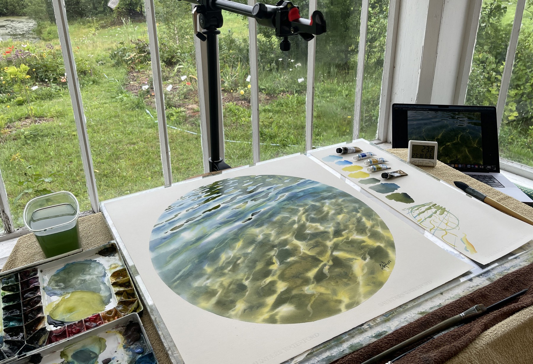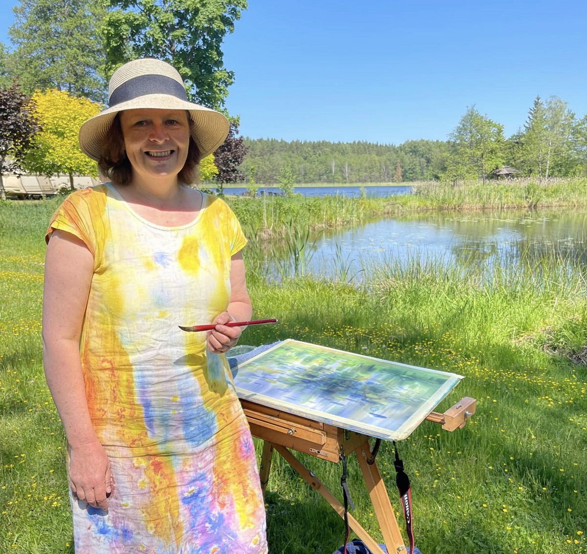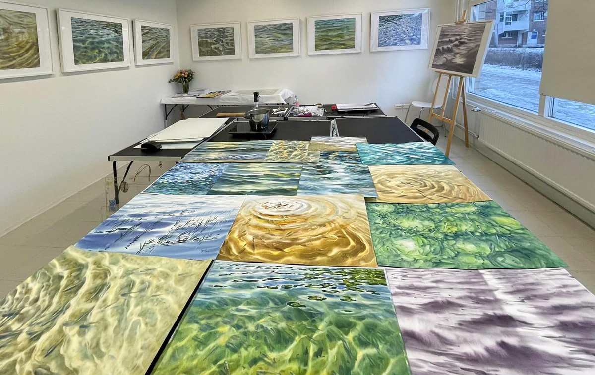 Ha estado dibujando toda su vida. Cuando sus tres hijos eran pequeños, tenía muy poco tiempo. Solía pintar por las mañanas temprano junto al lago cuando salía el sol mientras todos dormían. Desde entonces, ha aprendido a valorar el tiempo y dedico sus mejores horas a la acuarela.