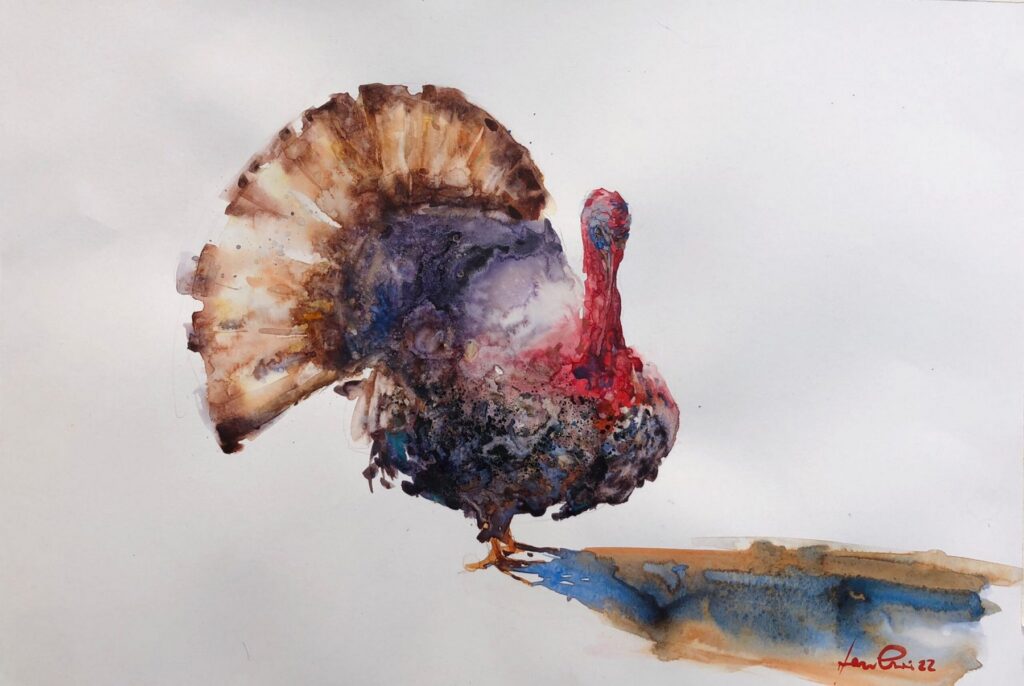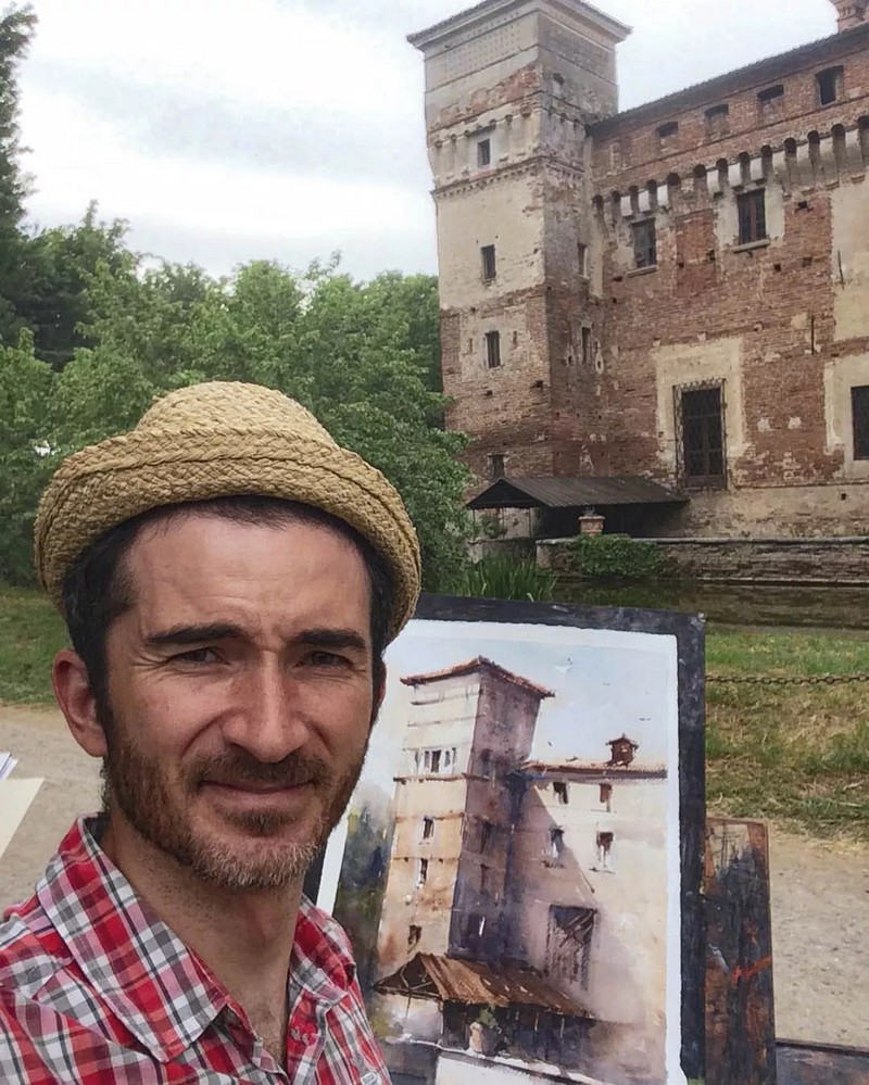 Pinta desde 2014. Su pasión por el paisaje, el aire libre y el senderismo le llevaron, tras un viaje por los olores y colores de Cerdeña, a reabrir su caja de acuarelas. Desde entonces ha vuelto a estudiar para perfeccionar su técnica y se ha inspirado en el entorno que le rodea.