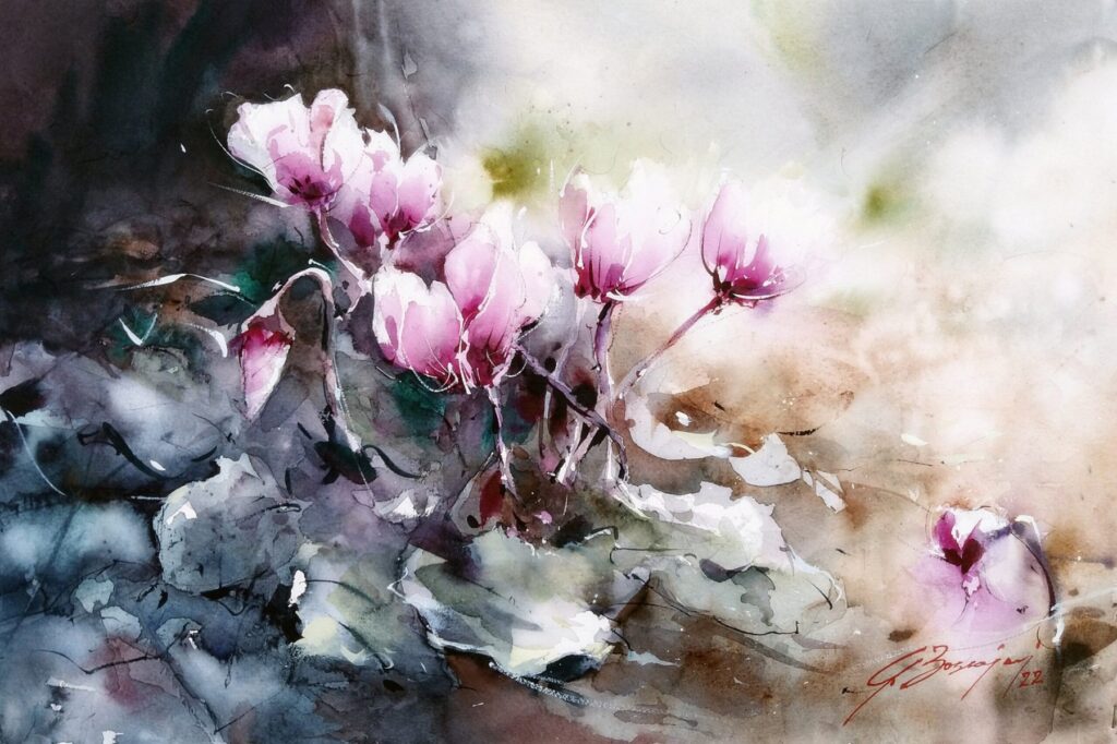 Sus obras contienen estados de ánimo y sensaciones representados por un lenguaje basado en el correcto uso del color, el juego del agua, la luz y la armonía de las formas.