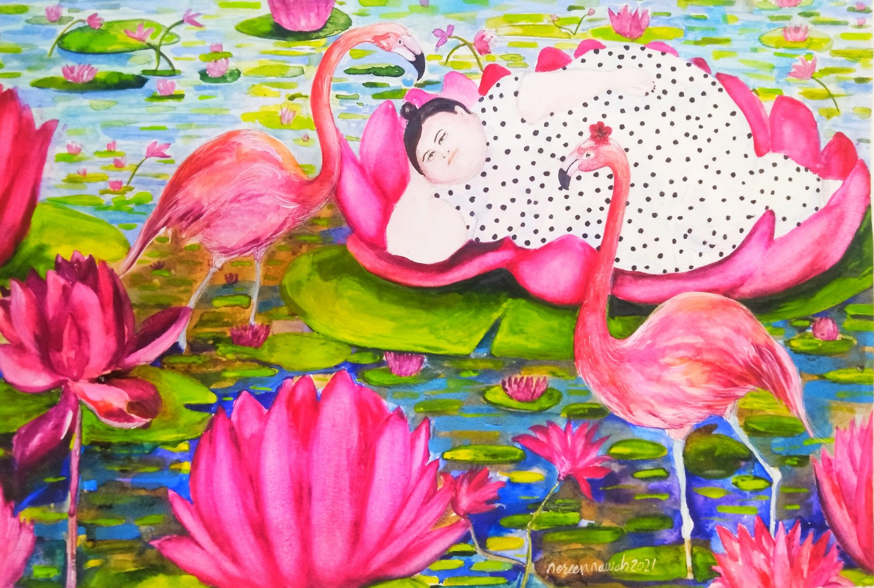 Noreen Nawab es una artista visual contemporánea que vive y trabaja en Lahore, Pakistán, que creó su propio estilo de pintura único y distintivo influenciado por muchas civilizaciones, artistas europeos, artistas occidentales, artistas simbolistas austriacos, artistas españoles, etc. Su infancia comenzó como una pequeña artista a la edad de 7 años, a nivel nacional, participó y organizó muchos talleres de arte y eventos en todo Pakistán.