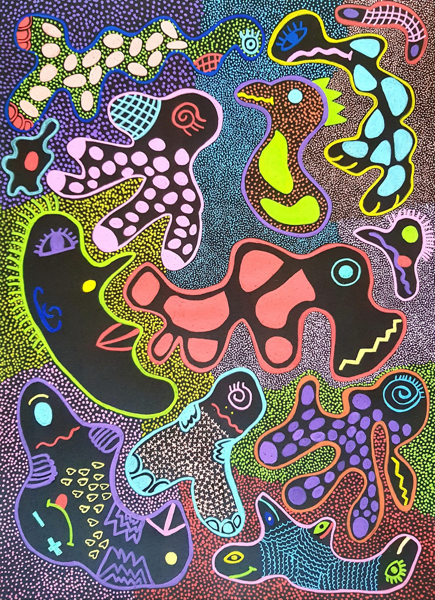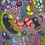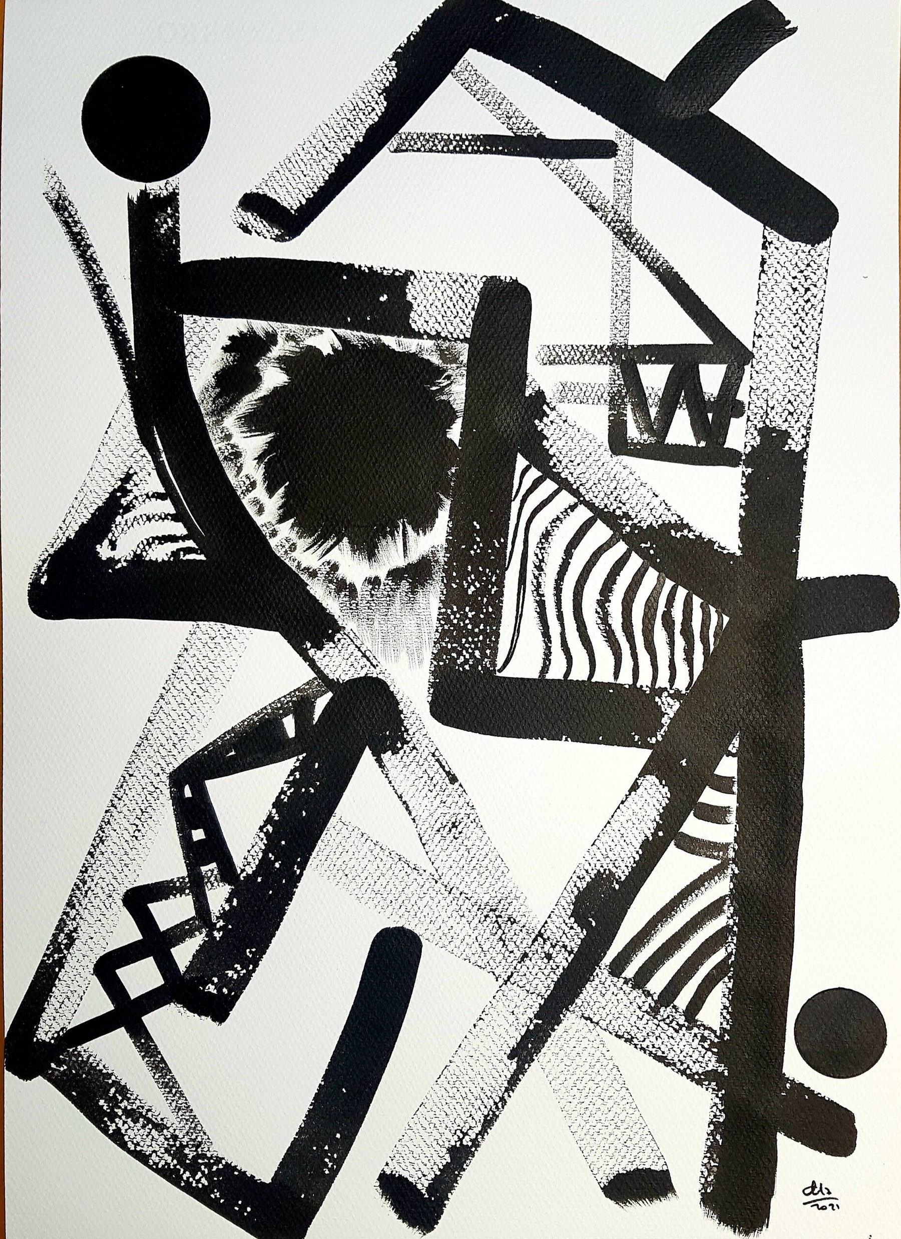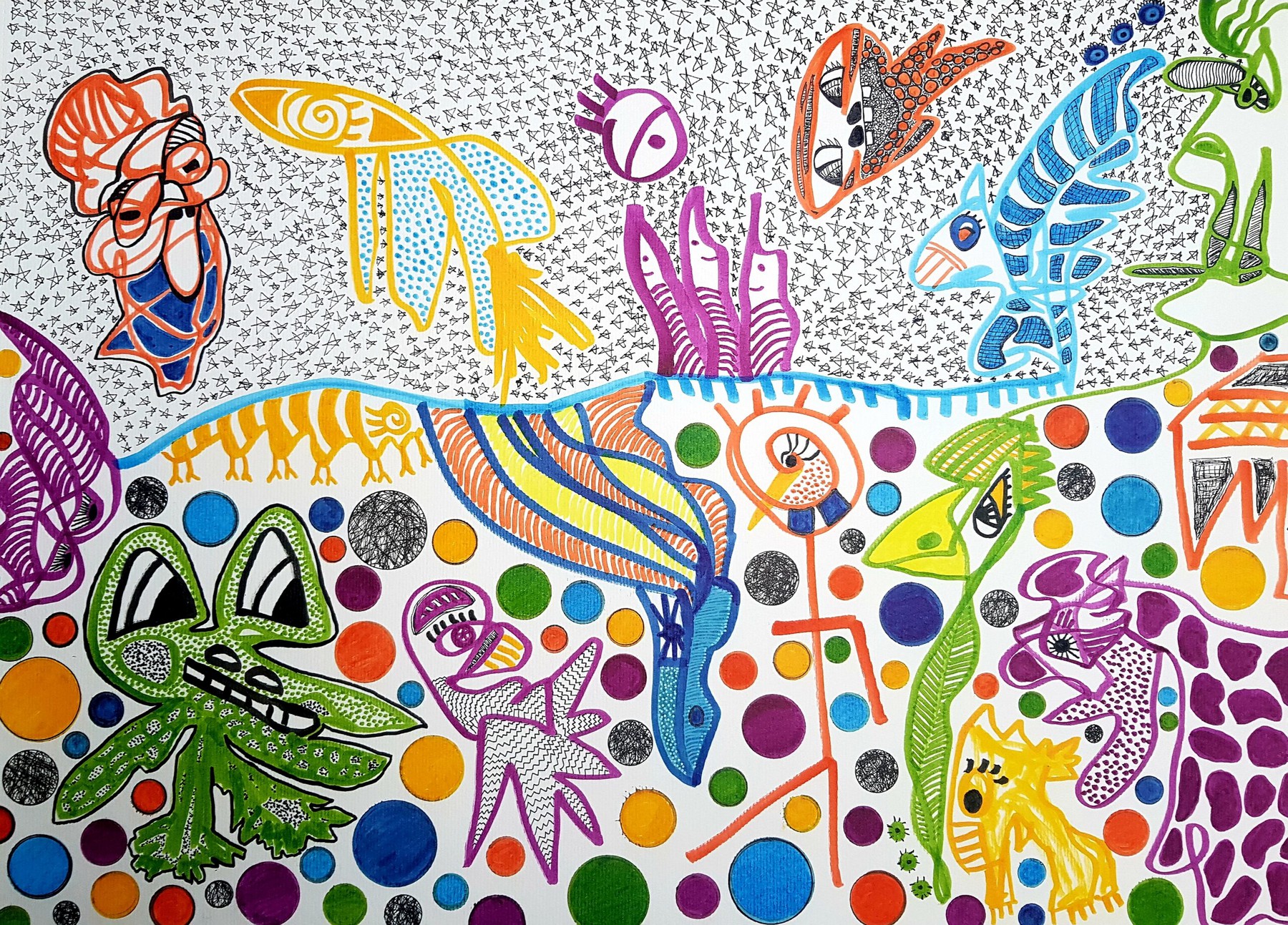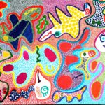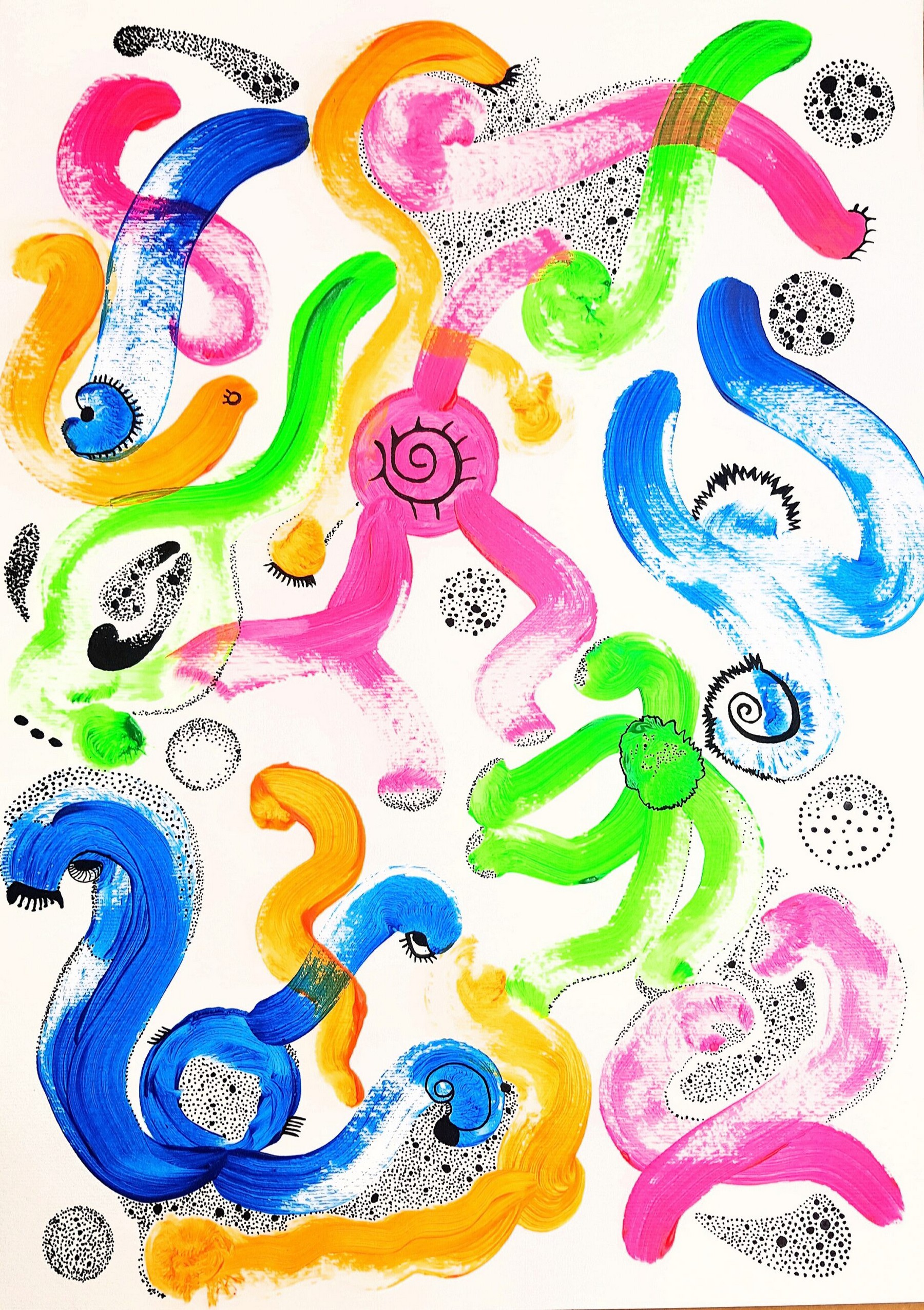 Otras veces, a partir de trazos muy sencillos pinta personajes en ellos.