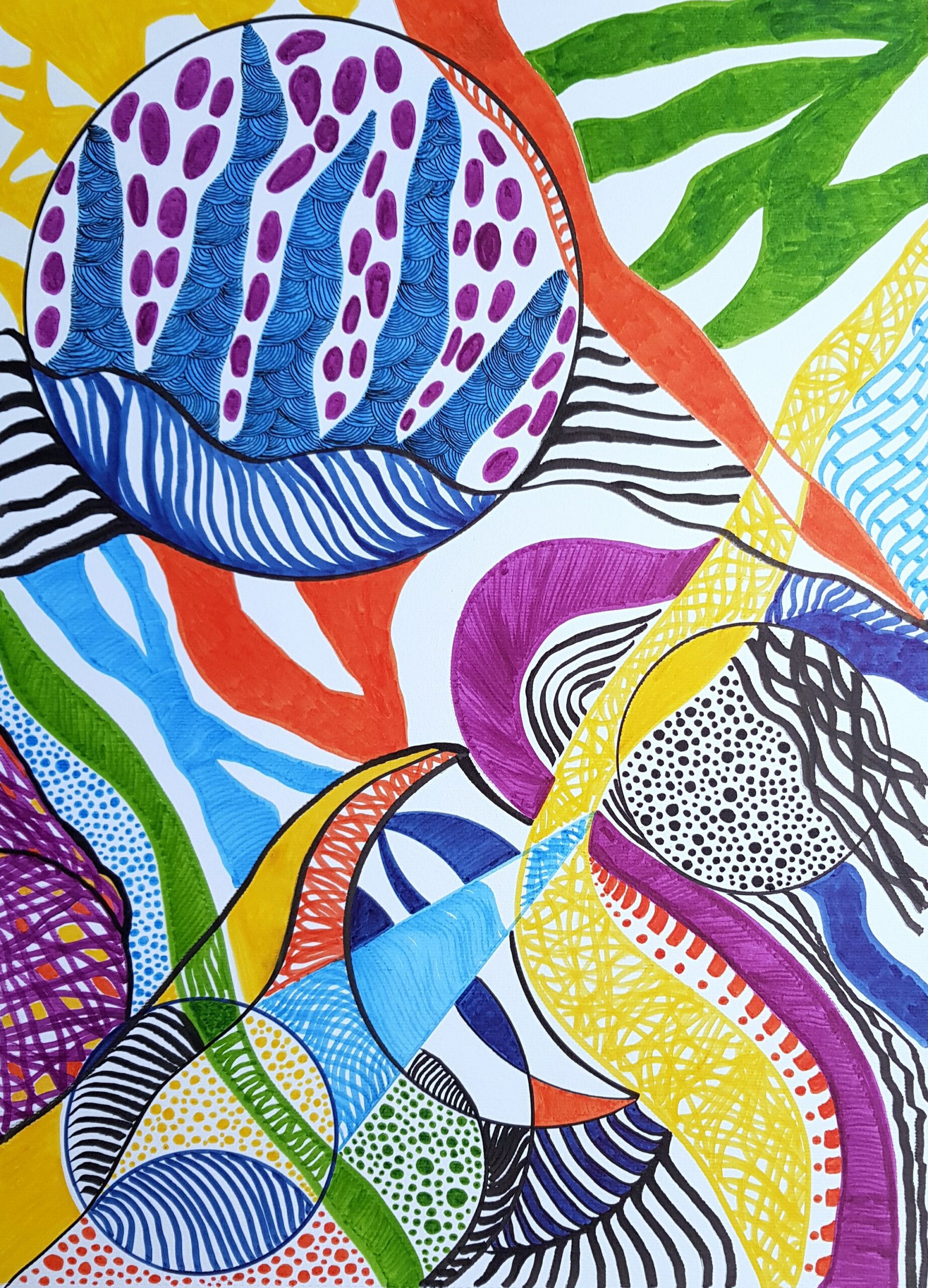 También le gusta pintar con nuevos materiales como masillas de carboncillos acuarelables, rotuladores ….. Pero sobre todo lo que pretende es divertirse pintando.