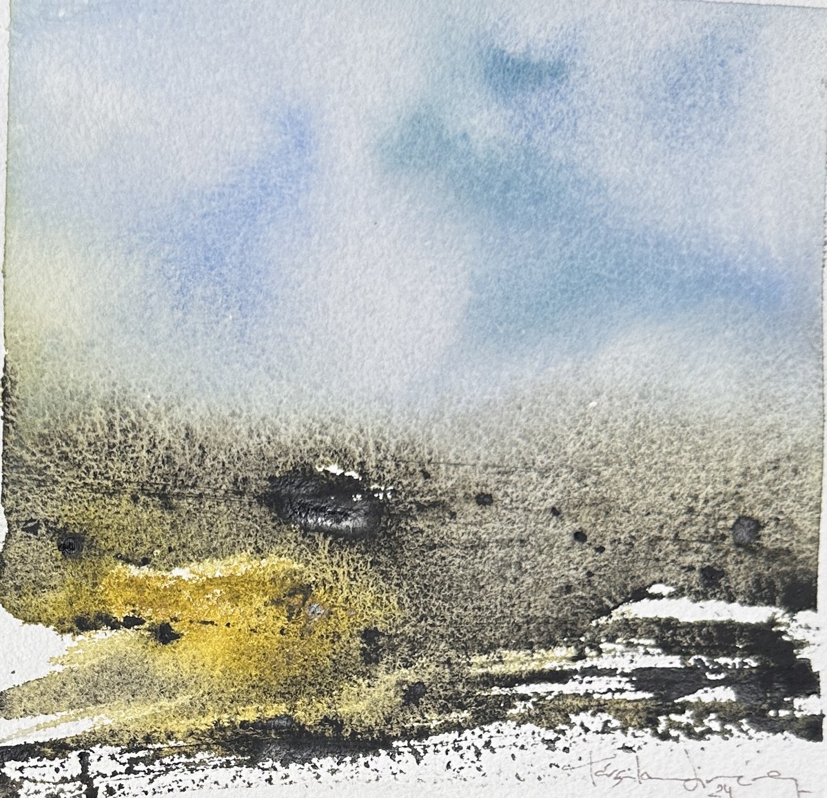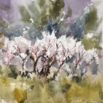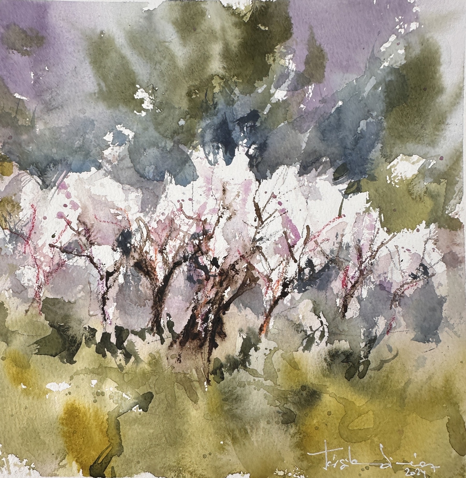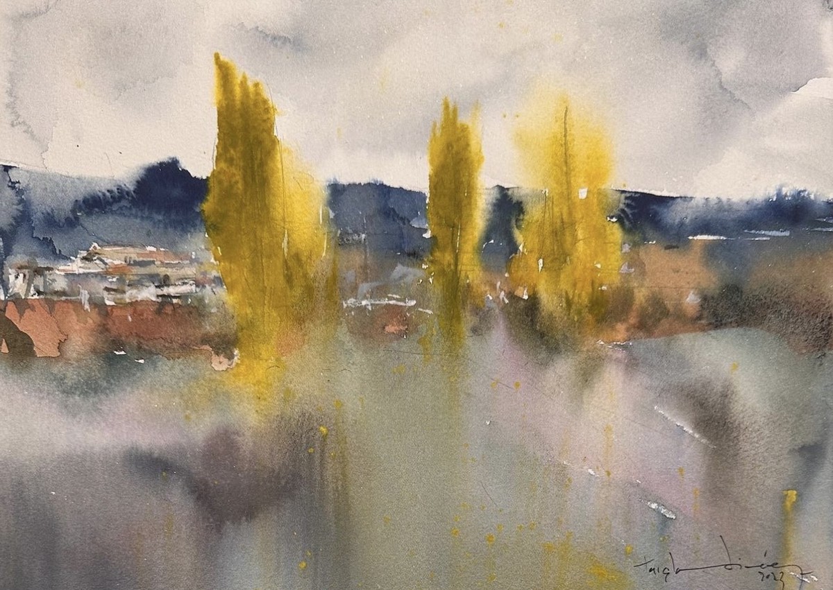Con la técnica de la acuarela trabaja desde los 18 años, siente una gran pasión por esta técnica, siempre viva, siempre en contínuo diálogo con el agua y el pigmento.