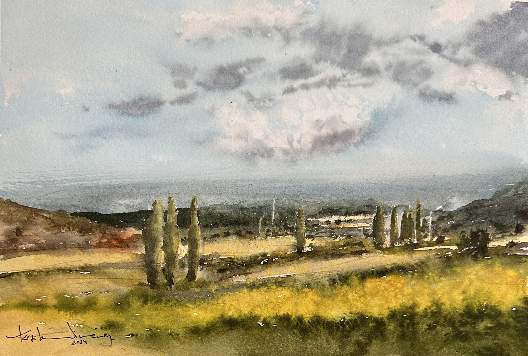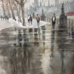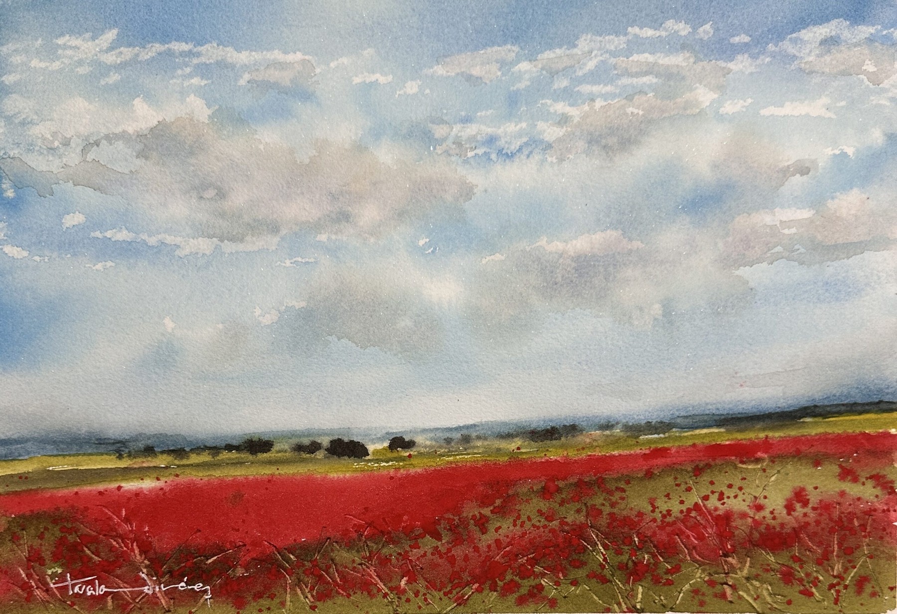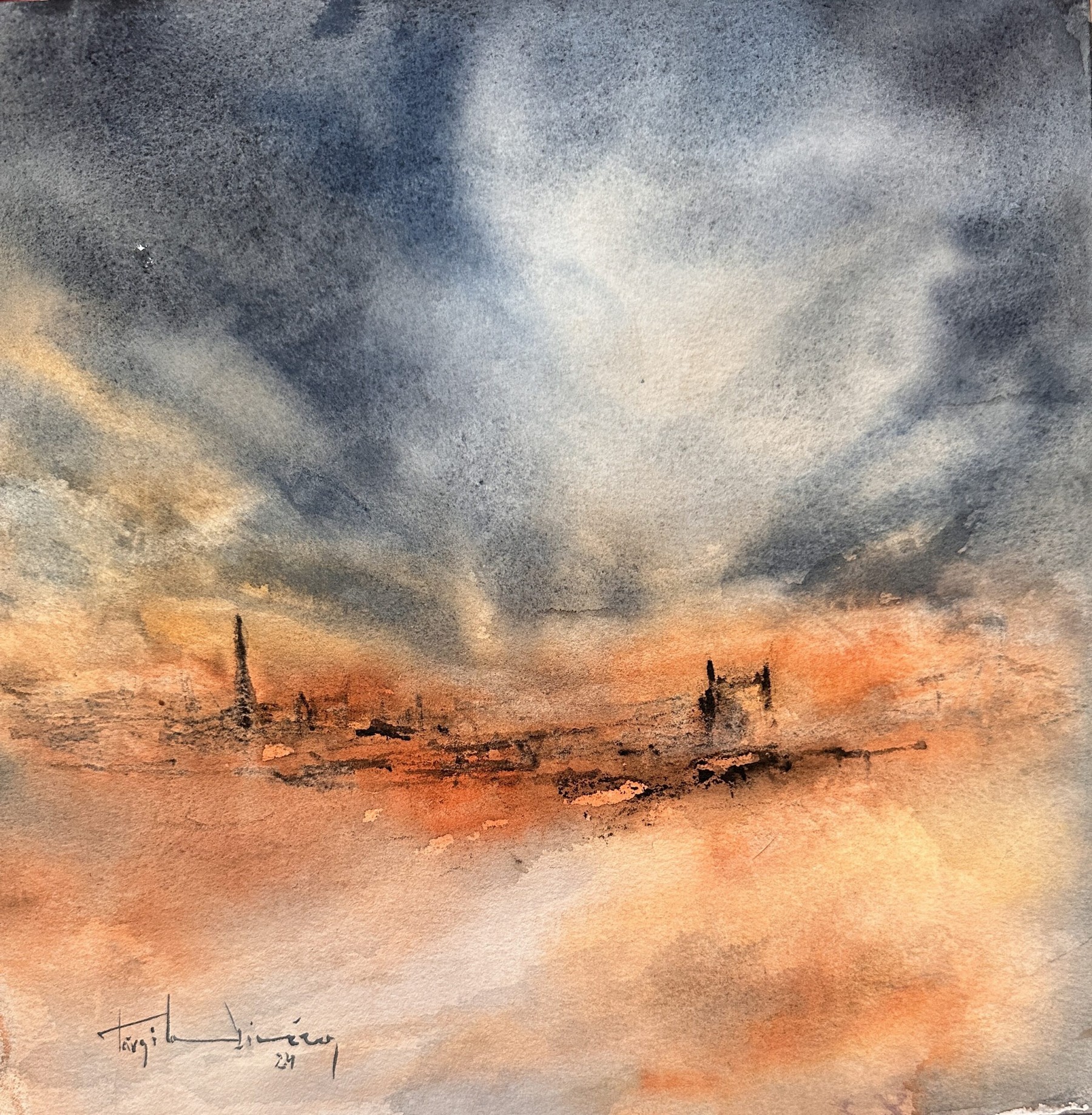 Con la técnica de la acuarela trabaja desde los 18 años, siente una gran pasión por esta técnica, siempre viva, siempre en contínuo diálogo con el agua y el pigmento.